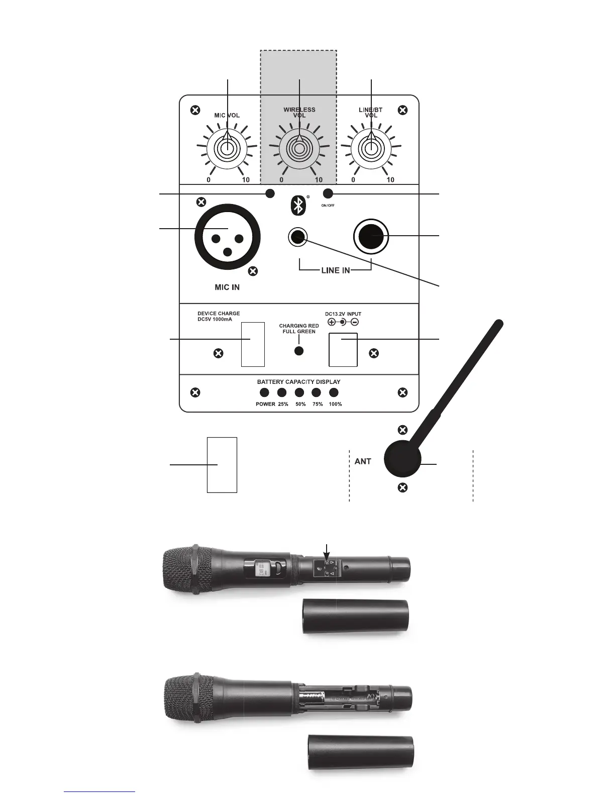 To be operational you must insert two AA batteries in the wireless microphone (Screw off he lower