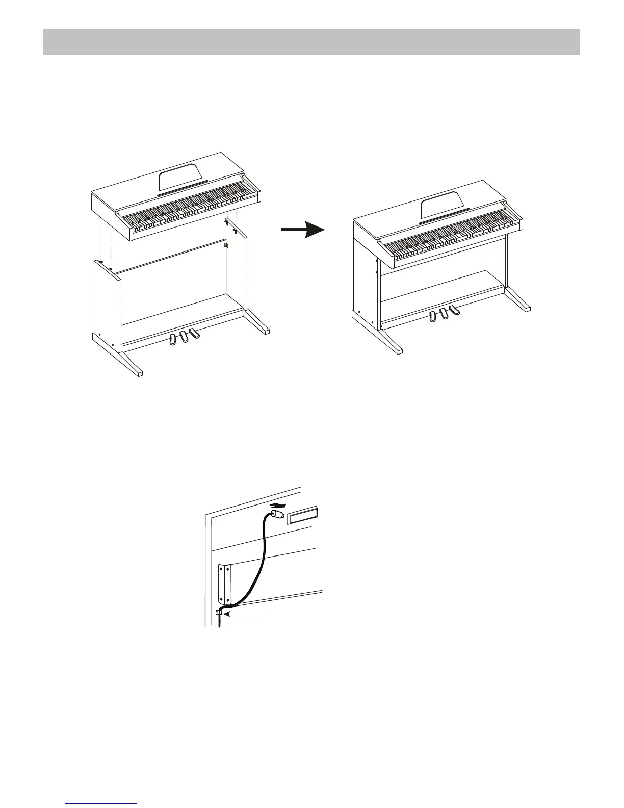 C. Put the piano body(1) on the top of the assembly finished in part B, use 4 pieces of hand