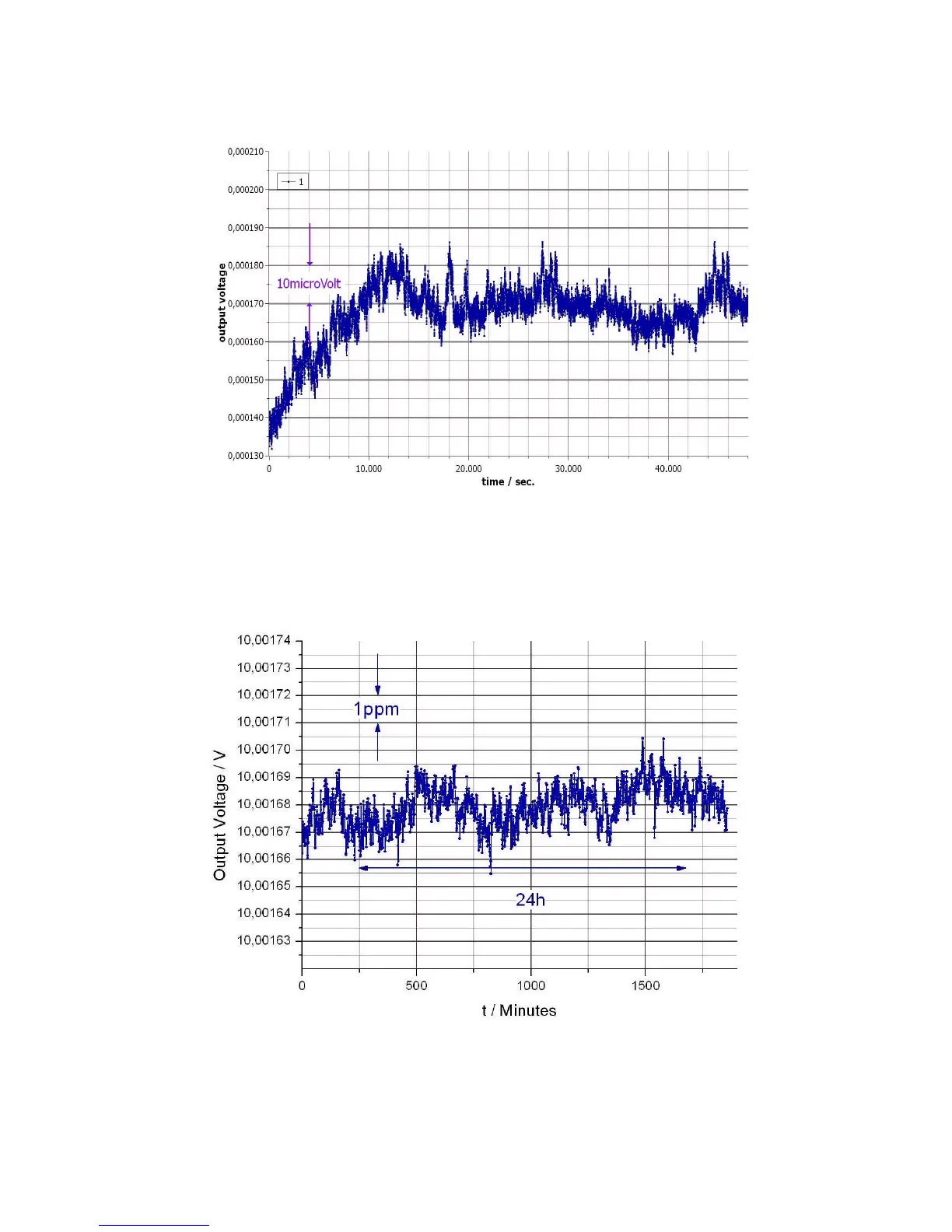 Fig. 9.4: This figure illustrates the stability of an output channel at +10V, BS series, over a 1-day interval.