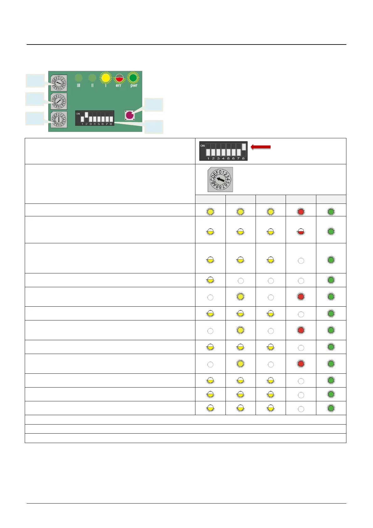 4. Set S3 DIP switch 8 to "OFF". The red and all yellow LEDs flash: The