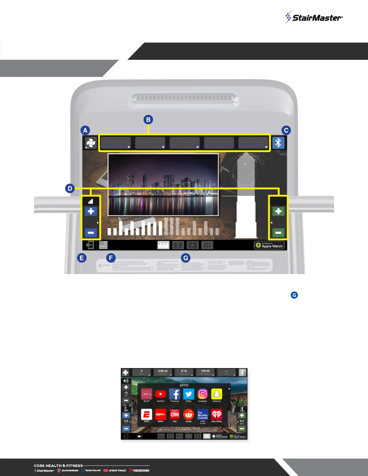 • Quick Workout stats plus customizable buttons to select incline/speed with single button