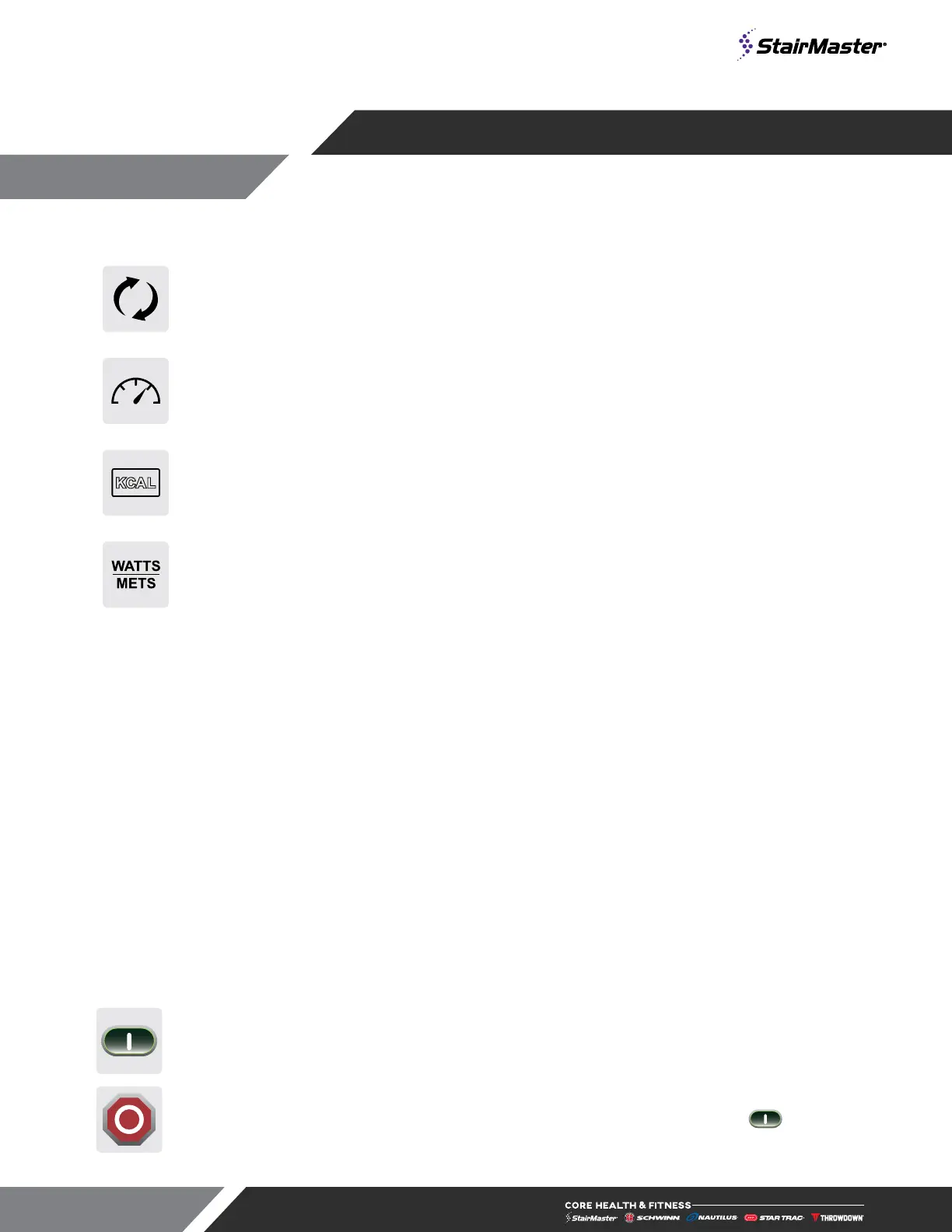 Press the STOP button to enter pause mode. Workout will be suspended and a countdown