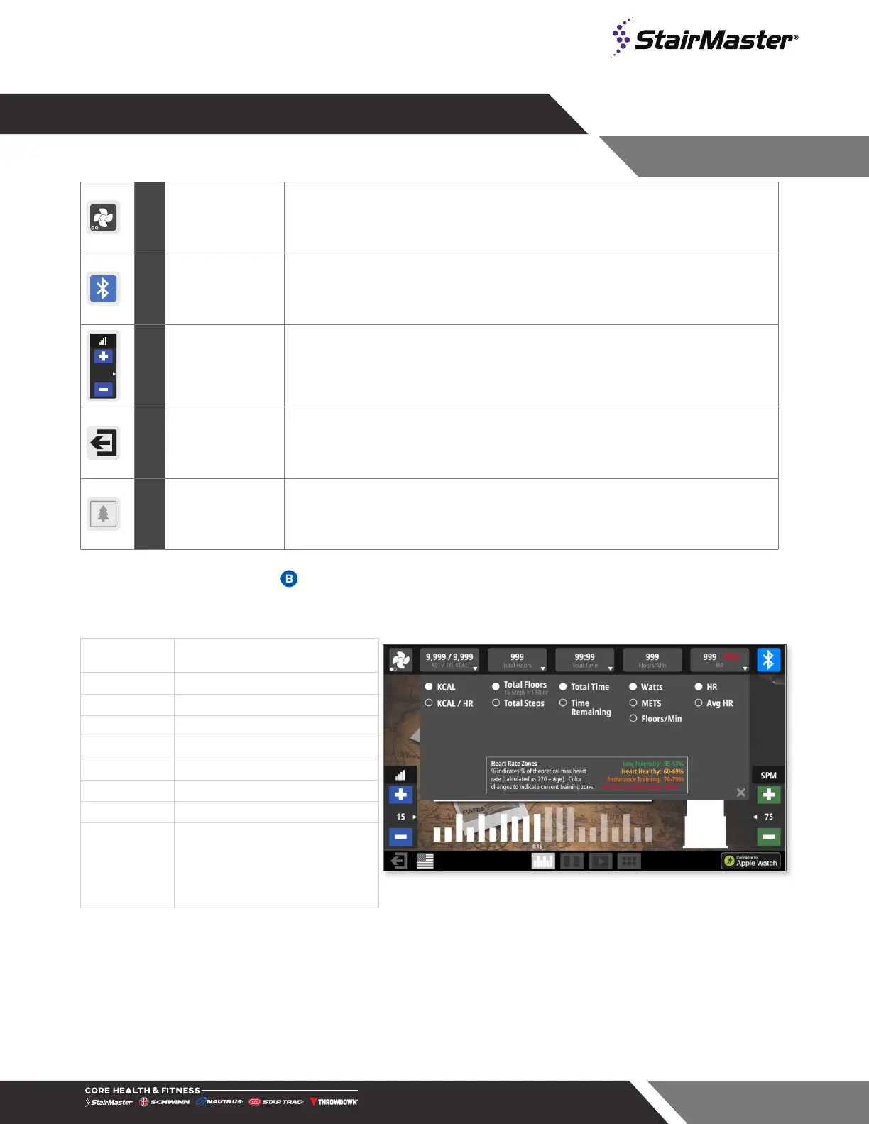 Allows user to increase/decrease level or steps.