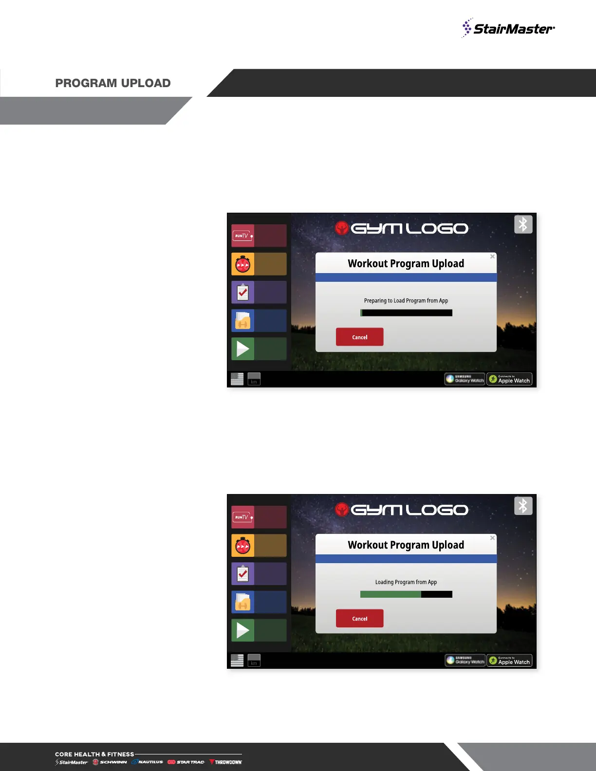 Prior to starting a workout, a BlueTooth connected device can be used to upload a program to display on the