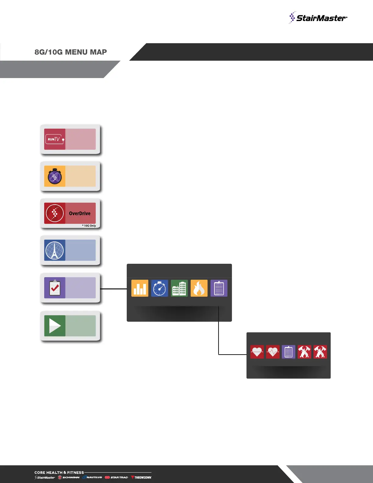 Stairmaster 8G - 8 G;10 G MENU MAP AND TRAINING TOOLS; Main Menu Navigation; Build A Workout and Training Tool Functions