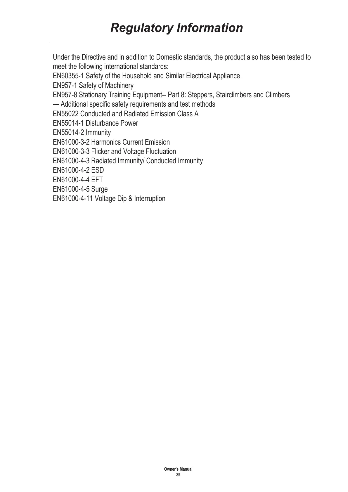 Under the Directive and in addition to Domestic standards, the product also has been tested to
