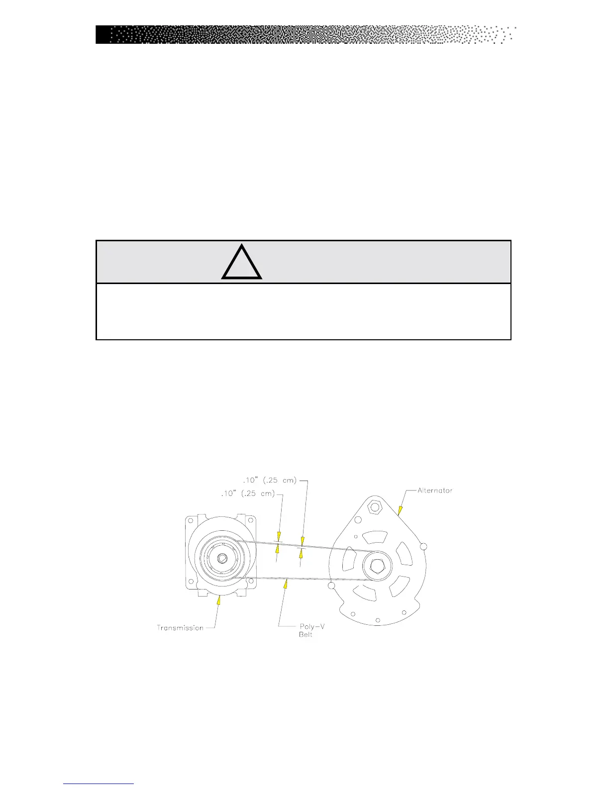 belt 1/10" (0.3 cm) at the center between the alternator and the