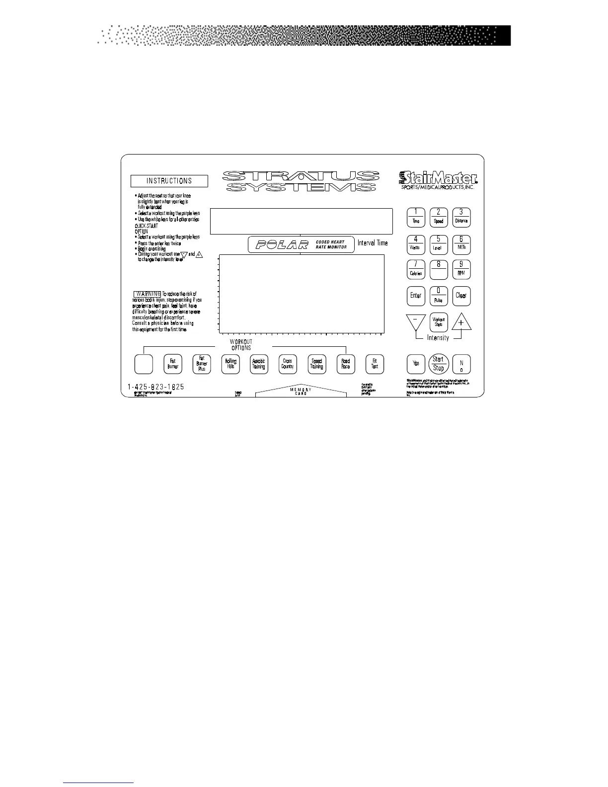 bar, the display, the function keypad and the exercise program keypad (see