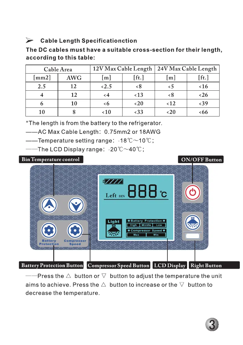 STAKOL EP23960 - Cable Specifications and Controls; DC Cable Length Specifications; Temperature Control Interface