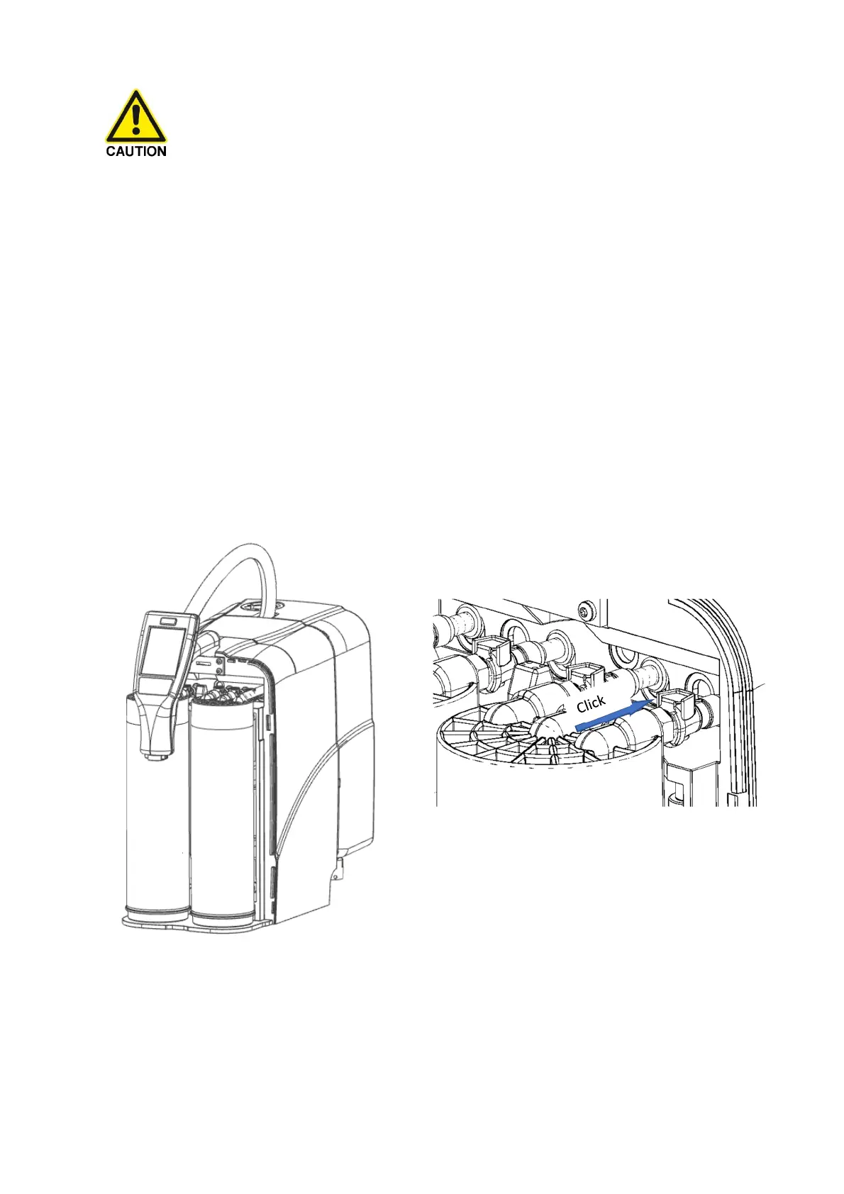 and the ultrapure water cartridge in the left slot. Connect the cartridges with the quick-release