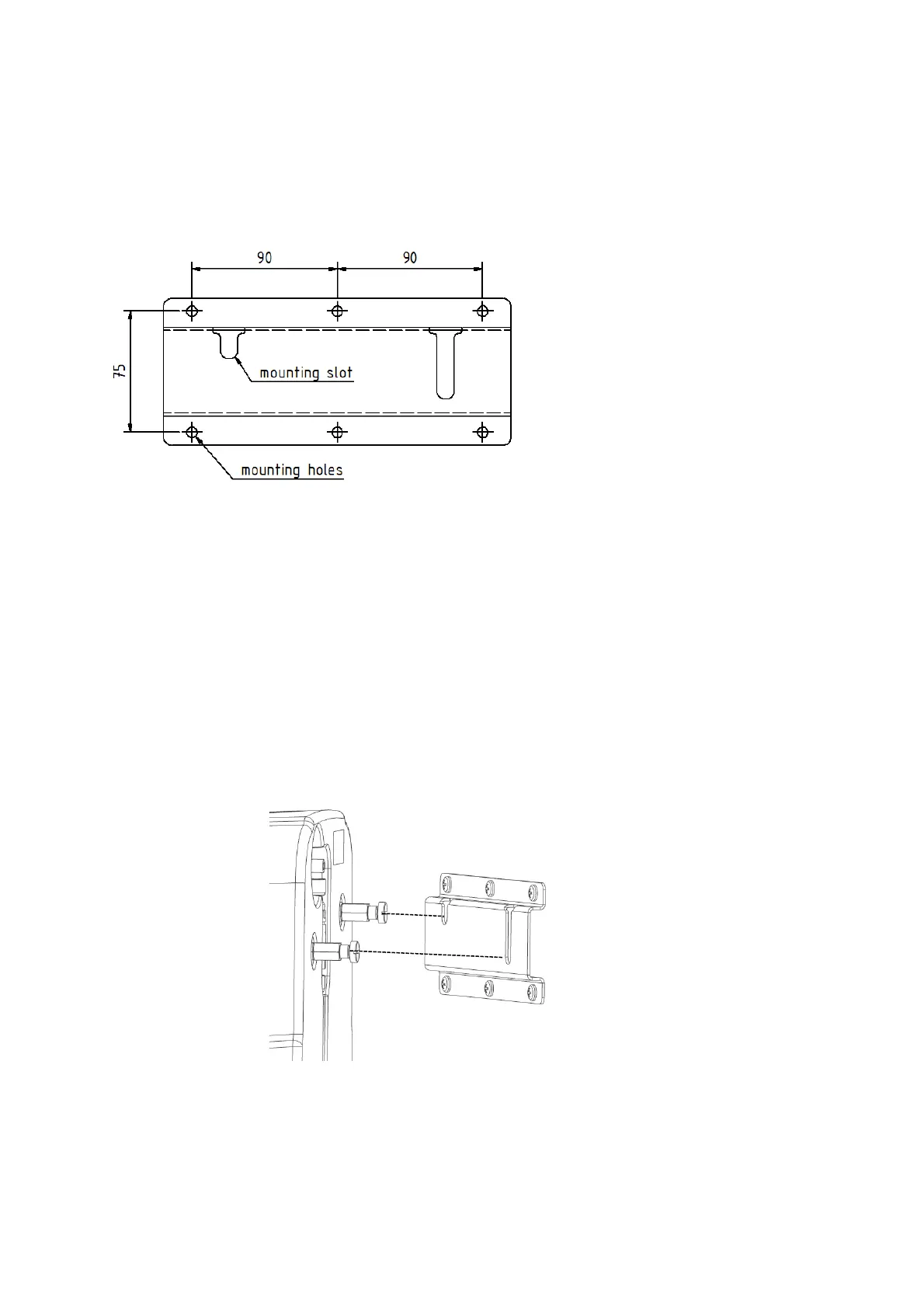 screws so that the two mounting holes are facing upwards. Please note that the fastening material