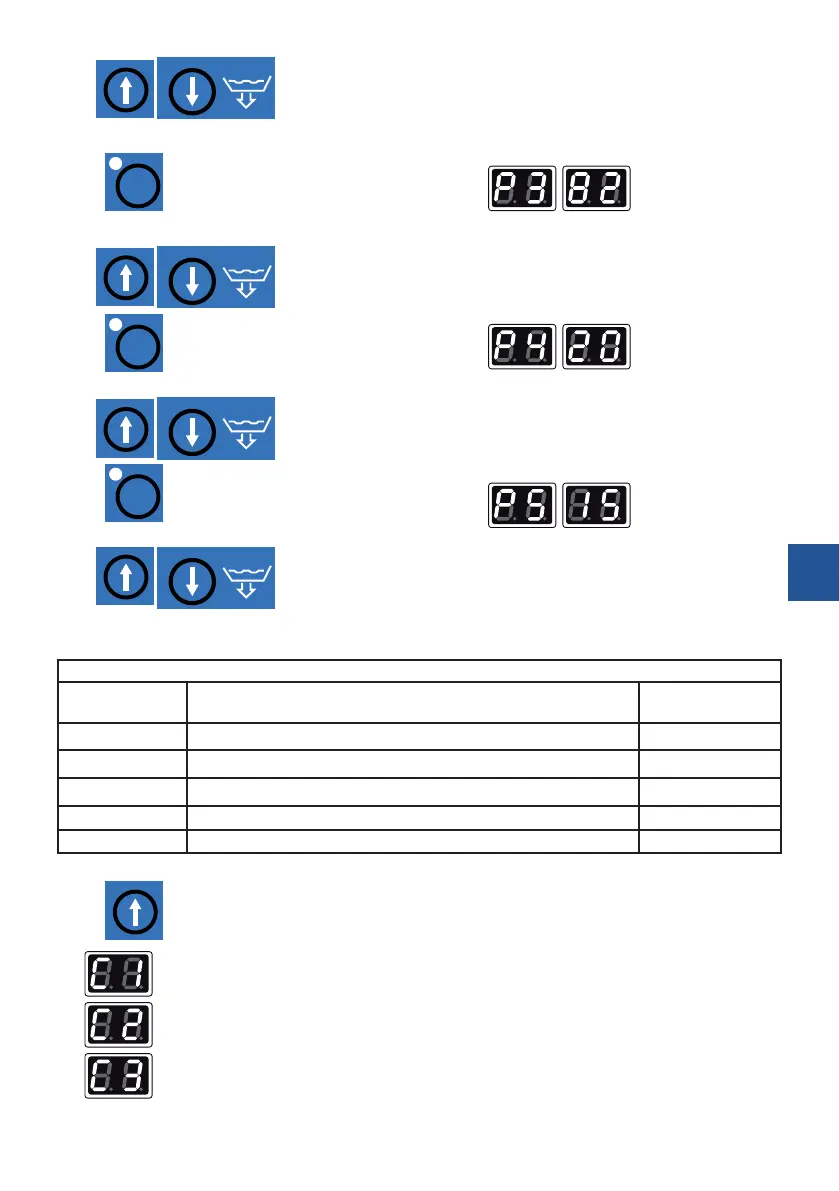 During the setting of the above parameters the display screen is blinking, and the values of the parameters