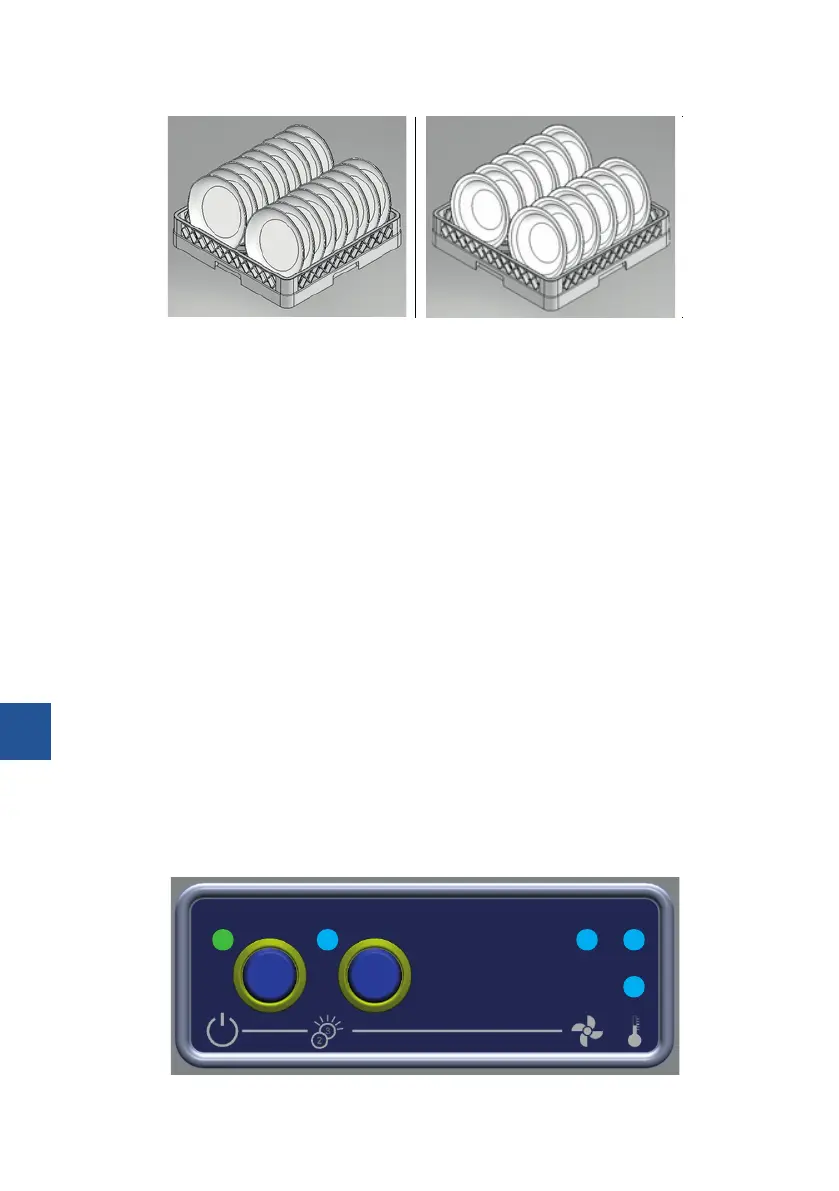 4. Coloque la vajilla de tal forma que permita la libre circulación del agua alrededor de ella. Co-