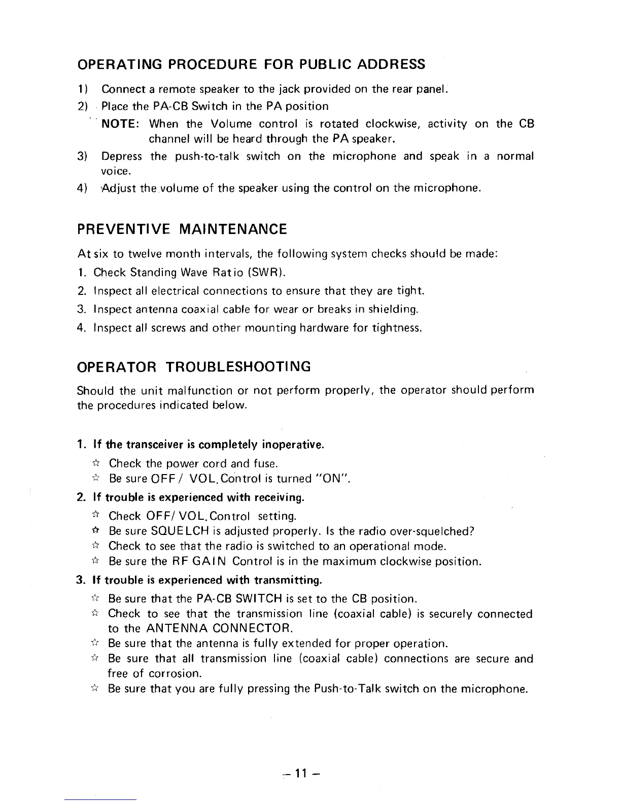 Stalkers IX - Preventive Maintenance and Troubleshooting; Preventive Maintenance; Operator Troubleshooting