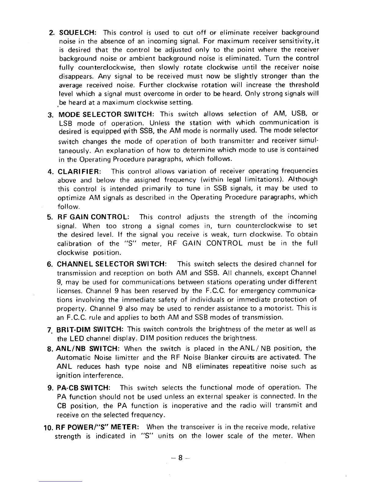 Stalkers IX - Squelch; Mode Selection Switch; RF Gain Control; Channel Selector Switch