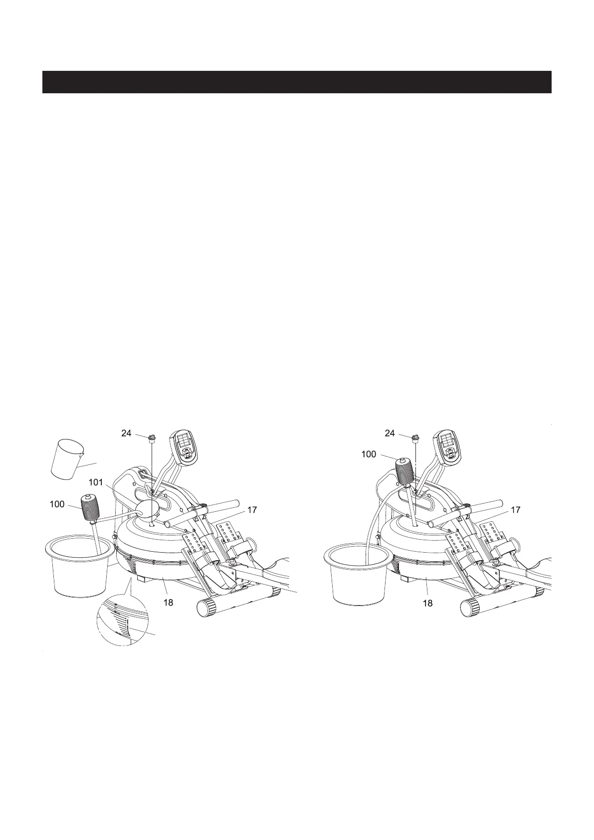 4. Once completed, insert the FILL PLUG(24) into the UPPER TANK(17). Please wipe excess water