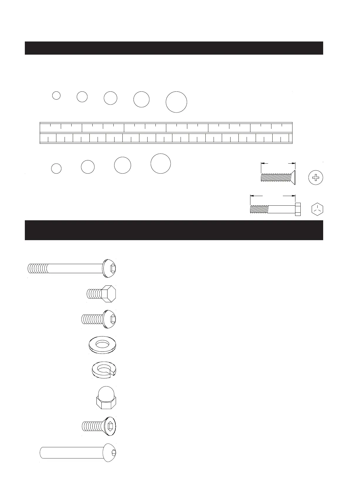 This chart is provided to help identify the hardware used in the assembly process. Place the washers or