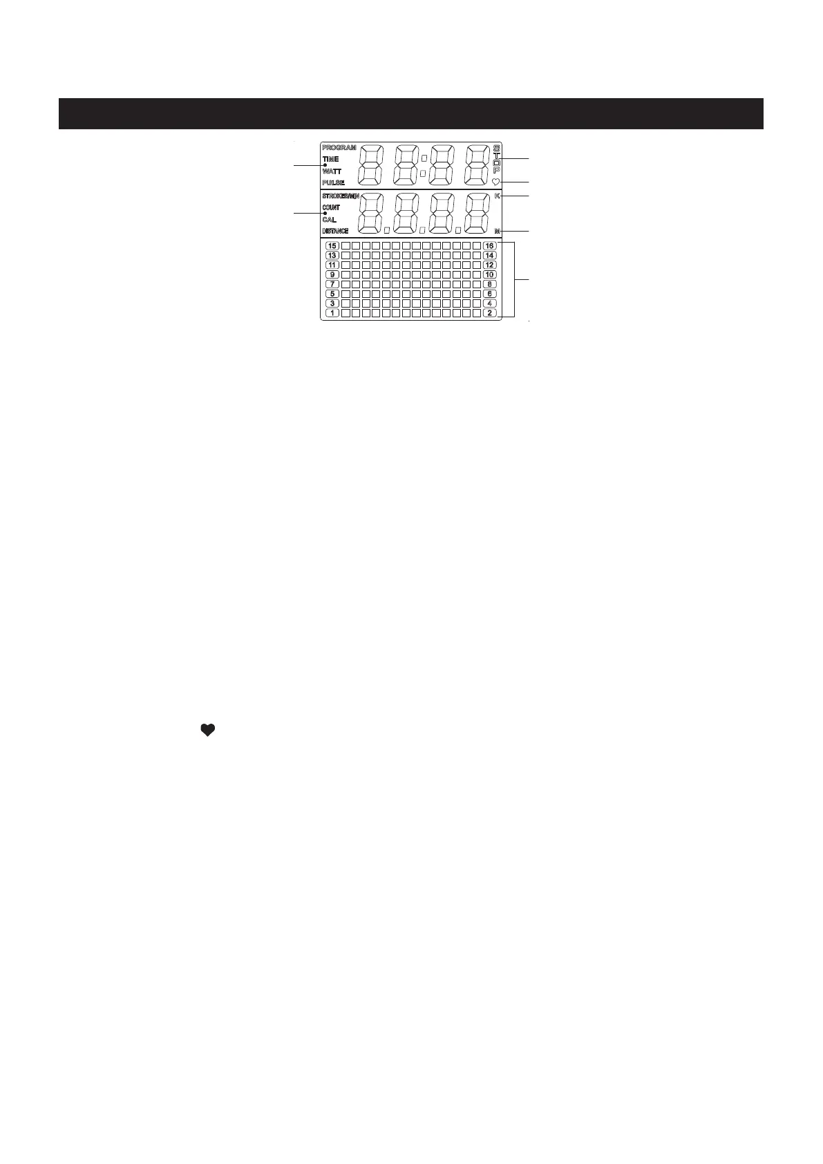 STROKES / MIN : Displays the current strokes per minute during exercise, from zero to 999 strokes per