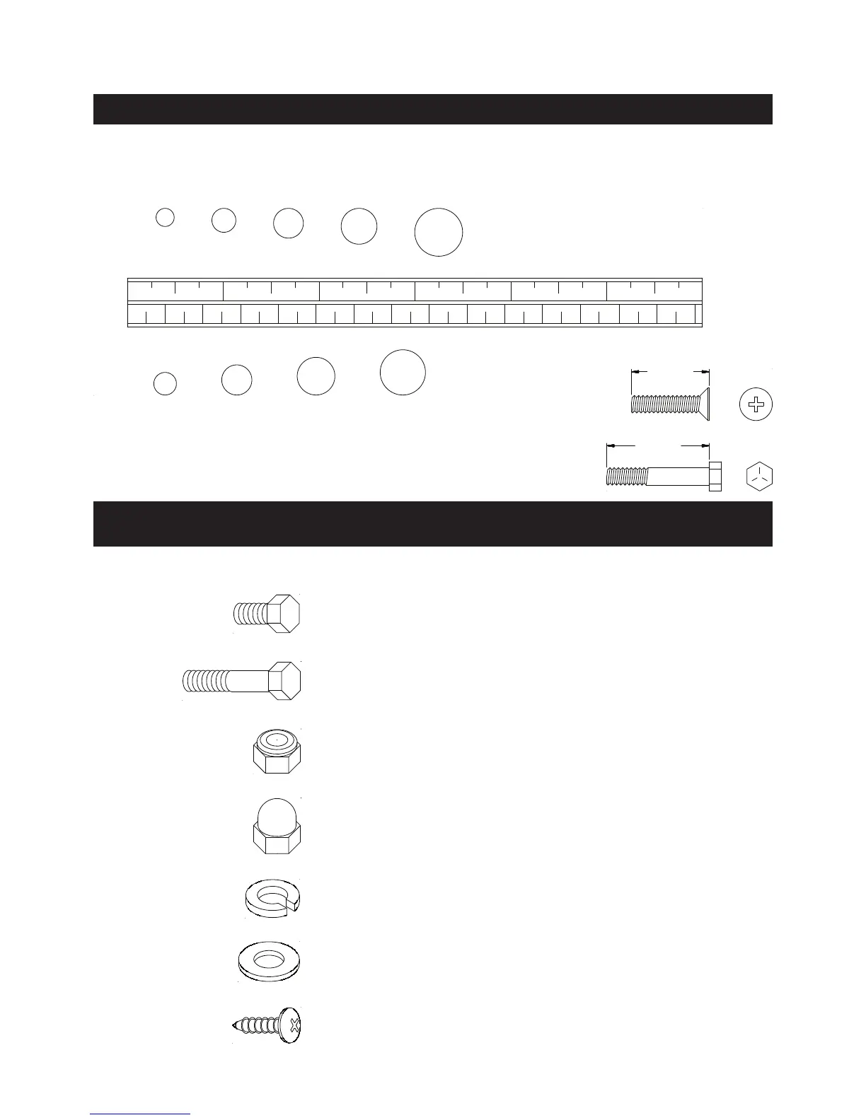 This chart is provided to help identify the hardware used in the assembly process. Place the washers or