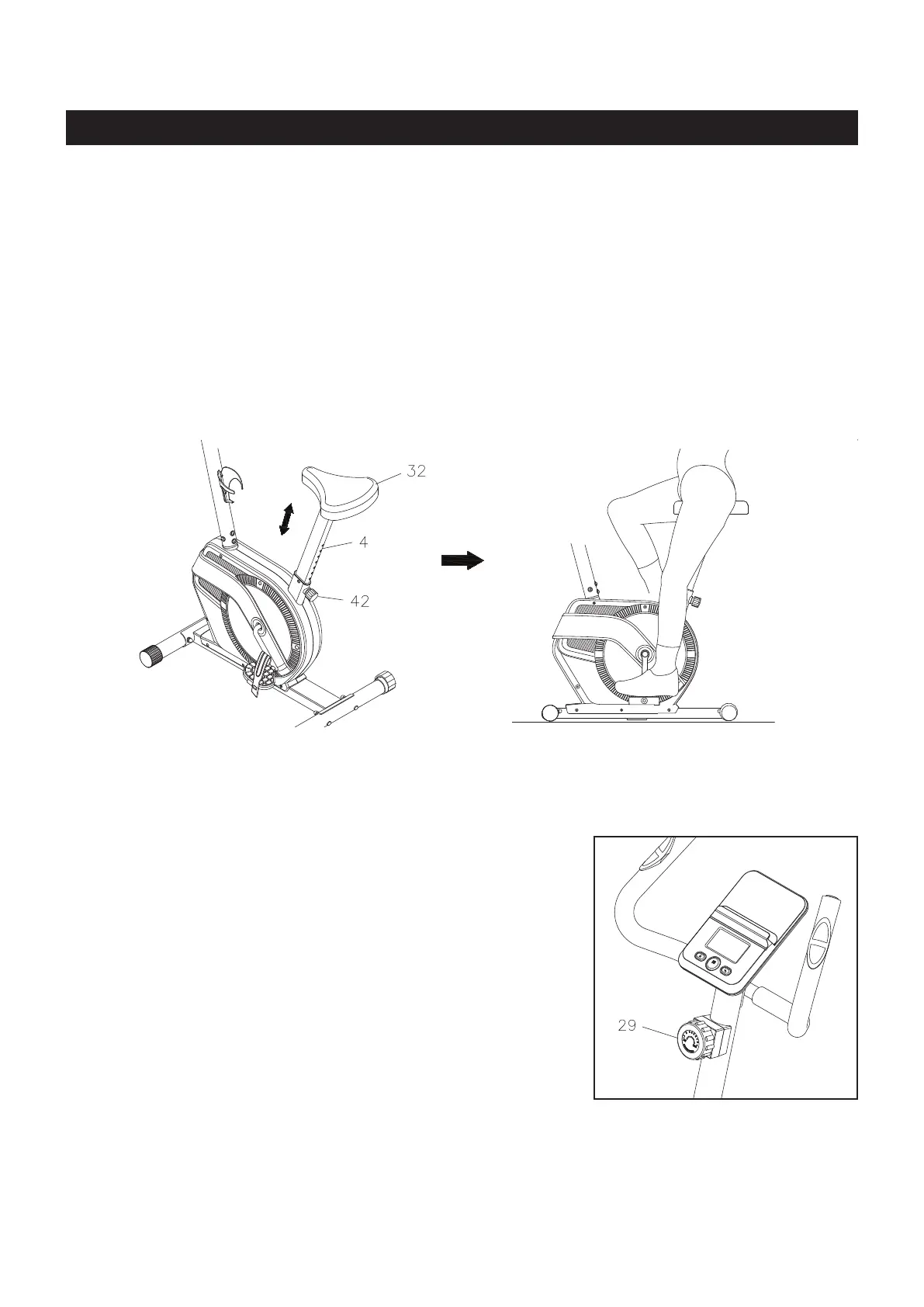 Proper seat height is important for ecient exercise. To determine proper seat height, sit on the BIKE and