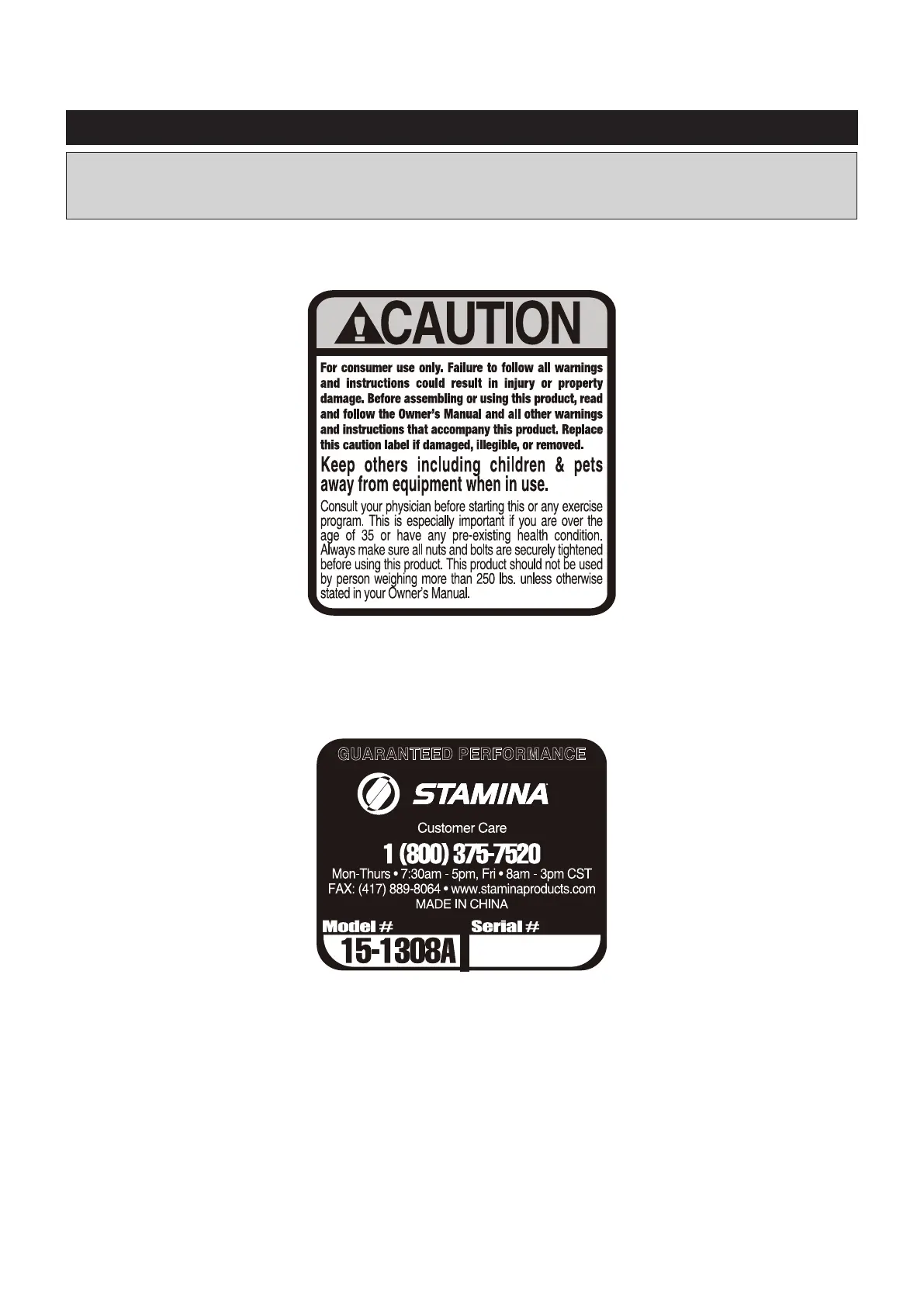 This chart is provided to help identify the warning, caution, and notice labels on the Stamina®