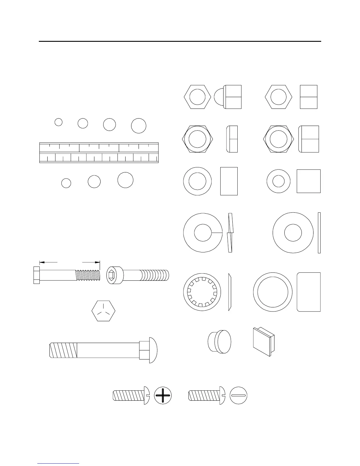 This chart is provided to help identify some of the small parts used in the assembly of this product. This