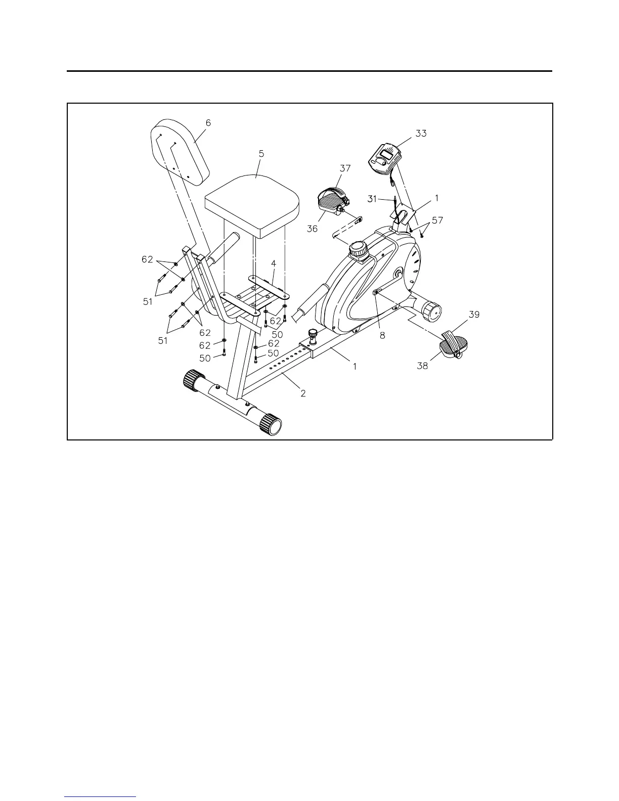 (M6)(62). Attach the BACK CUSHION(6) onto the SEAT FRAME(4) with BOLTS(M6 x 40mm)(51)