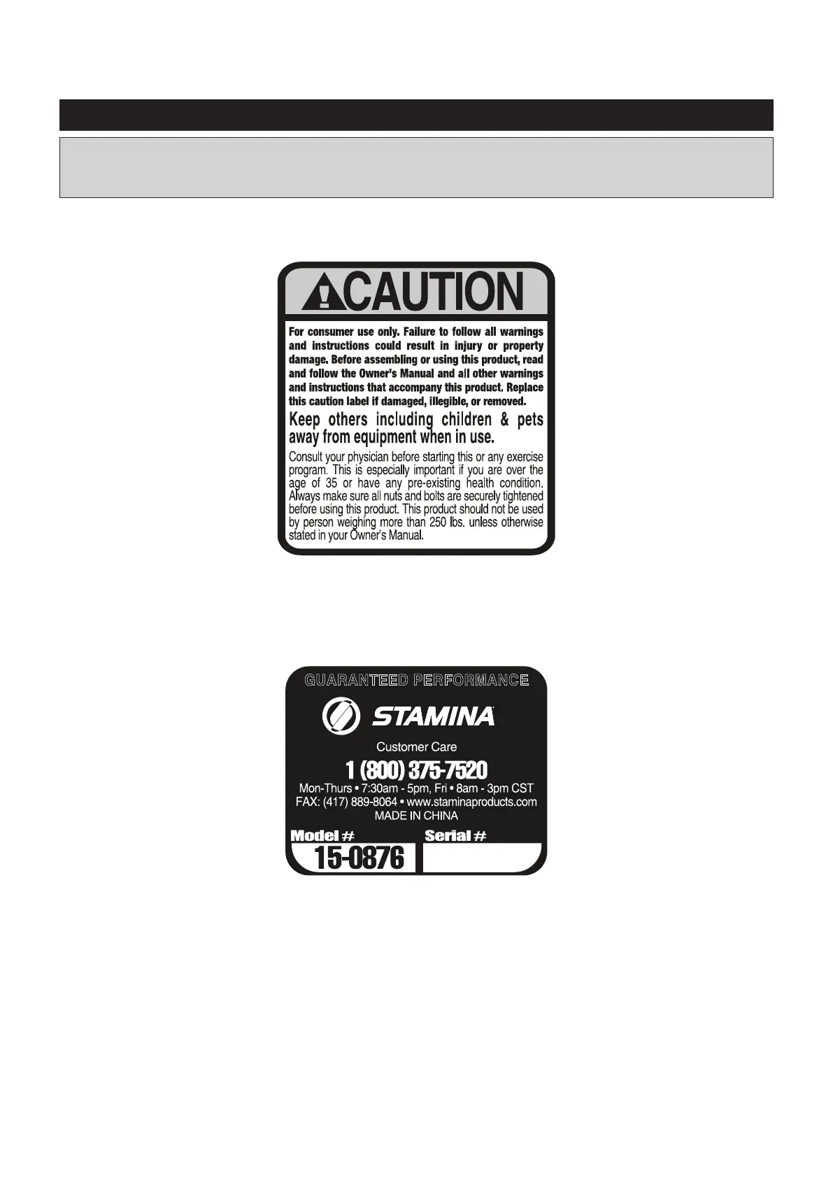 This chart is provided to help identify the warning, caution, and notice labels on the STAMINA® Air