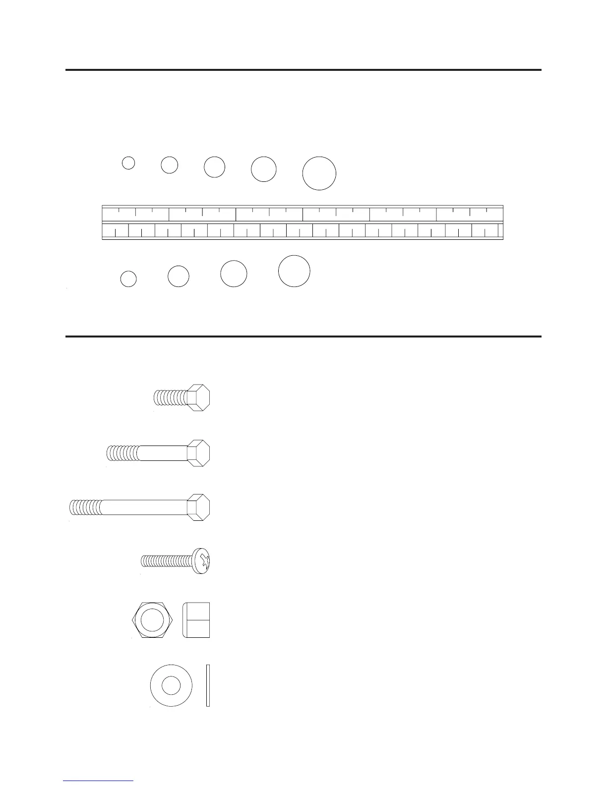 This chart is provided to help identify the hardware used in the assembly process. After unpacking the unit,