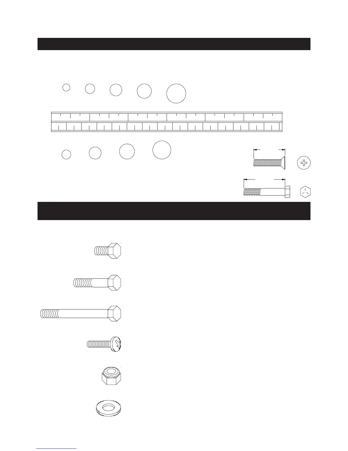 This chart is provided to help identify the hardware used in the assembly process. Place the washers or