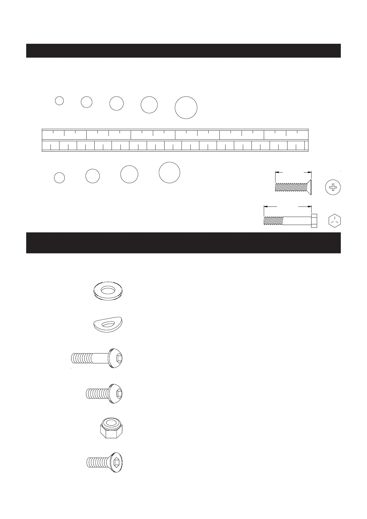 This chart is provided to help identify the fasteners used in the assembly process. Place the washers or