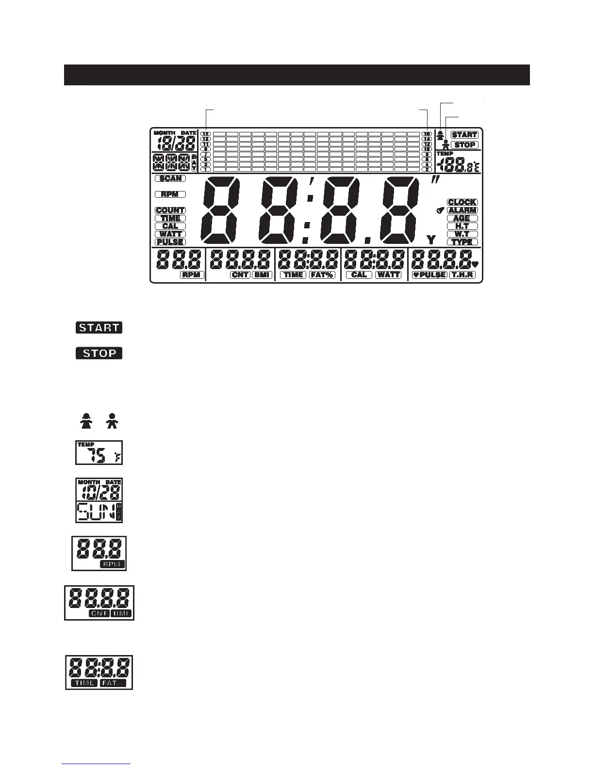 Displays the value of FAT% after you run the Body Fat program, from 5% to 50%.