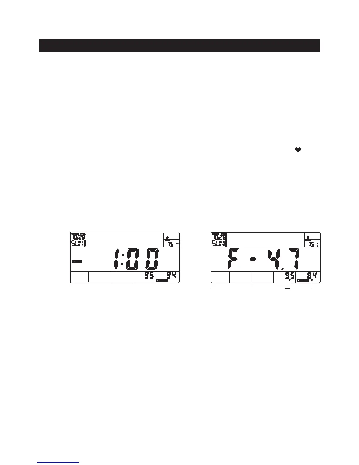 and the display will be as shown in illustration E. TIME will count down from 1:00 and the heart symbol “ “ will be
