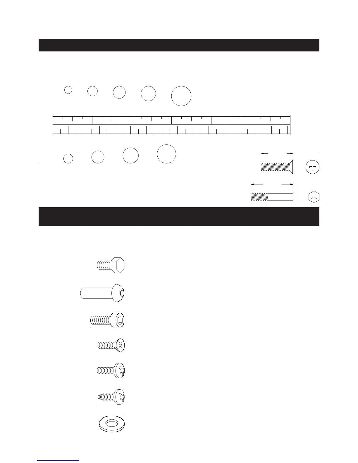 This chart is provided to help identify the hardware used in the assembly process. Place the washers or