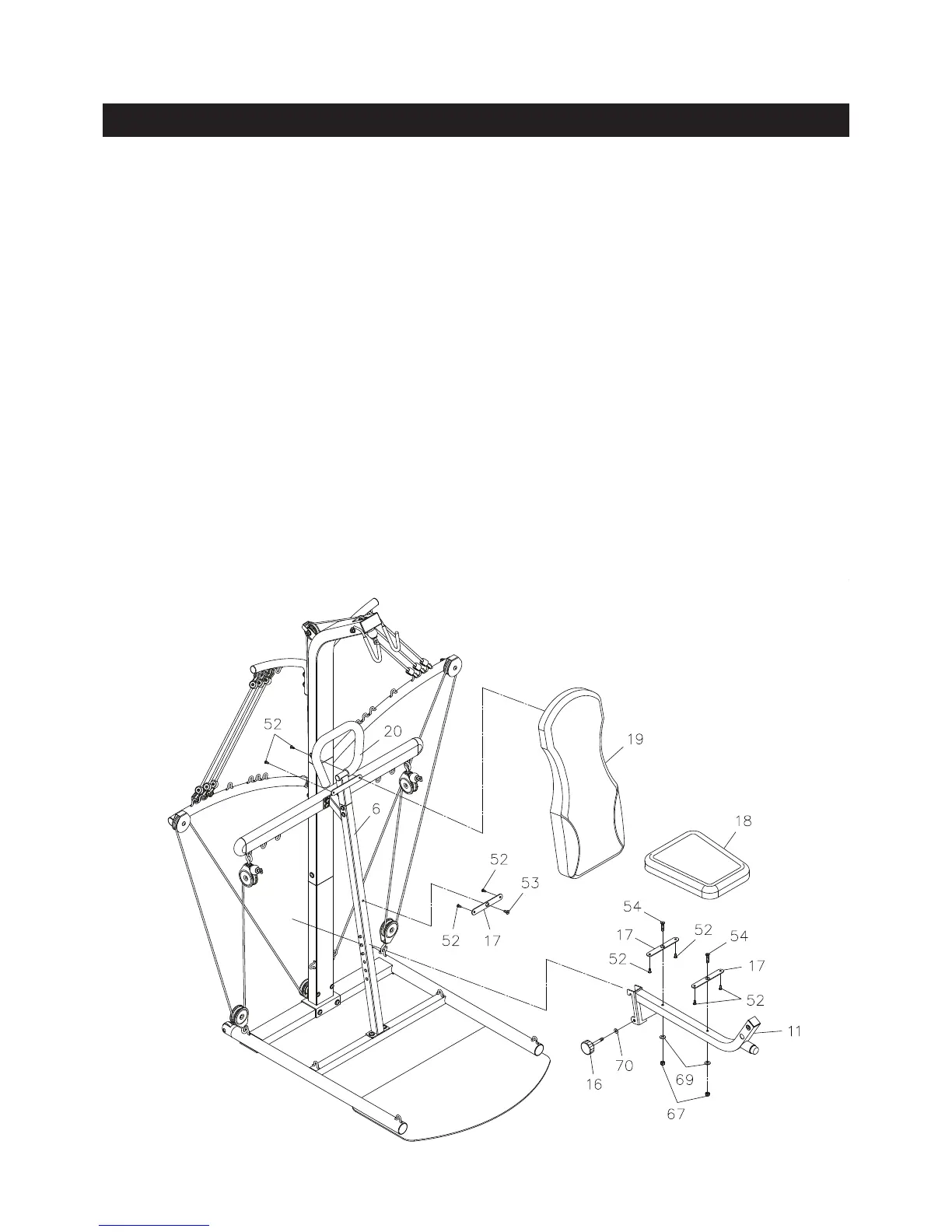 (53). Attach the BACK CUSHION(19) to the MOUNTING PLATE(17) and the mounting plate on the