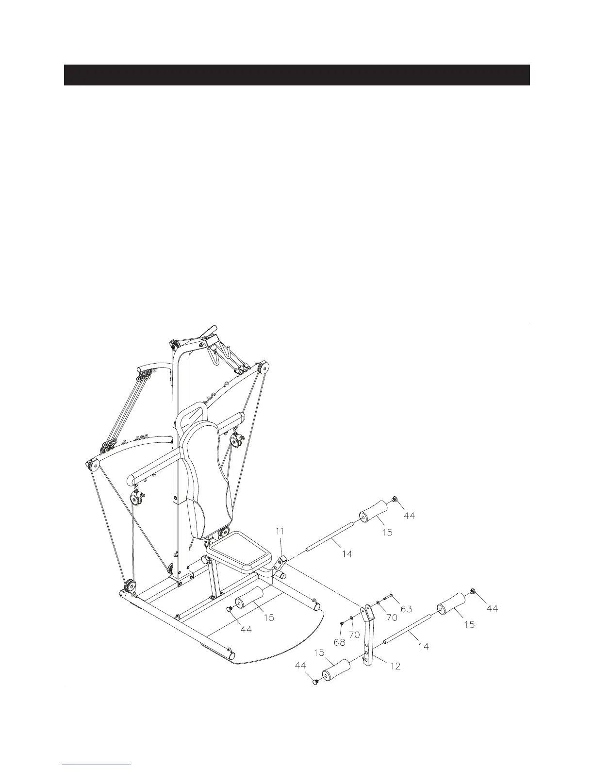 Attach the LEG LIFT(12) to the SEAT FRAME(11) with BUTTON HEAD BOLT(M10x1.5x65mm)(63),