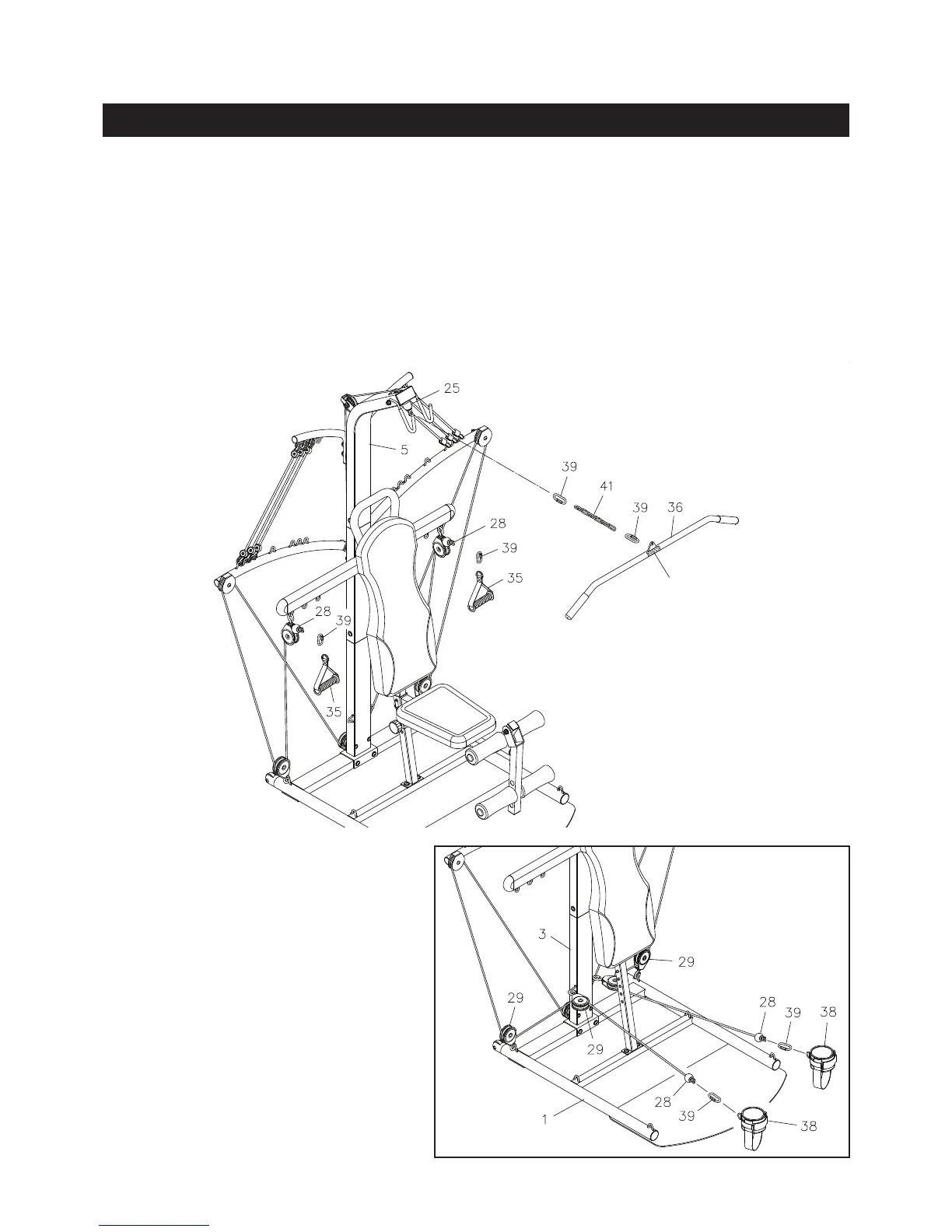 exercises, the CHAIN(41) should be attached between the LAT BAR(36) and the LAT BAR CABLE(25)