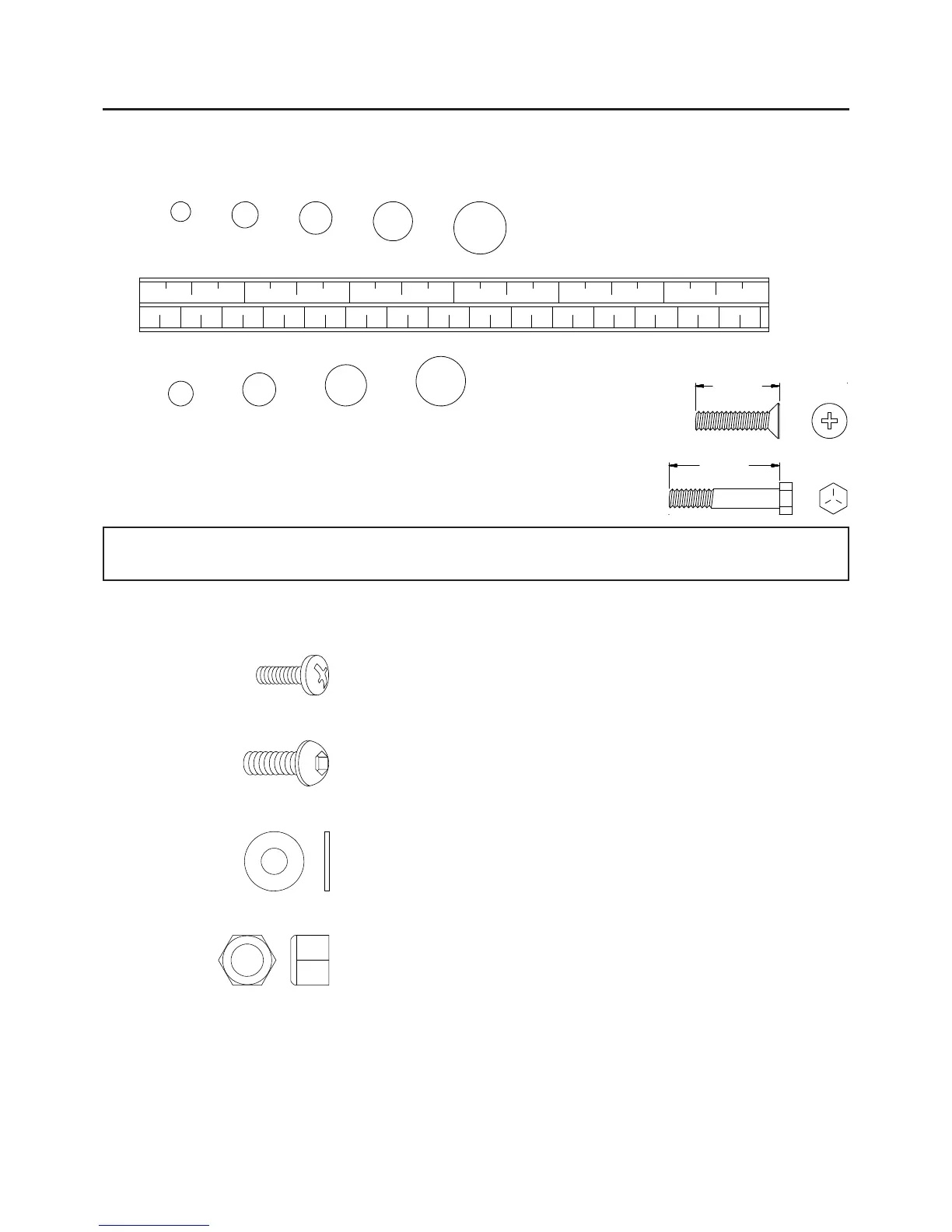 This chart is provided to help identify the hardware used in the assembly process. Place the washers or the