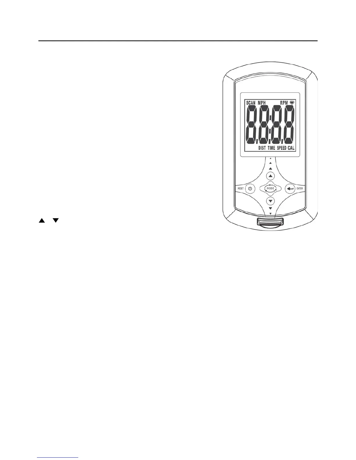Automatically scans TIME, SPEED, CALORIE, PULSE, RPM, and DISTANCE in sequence