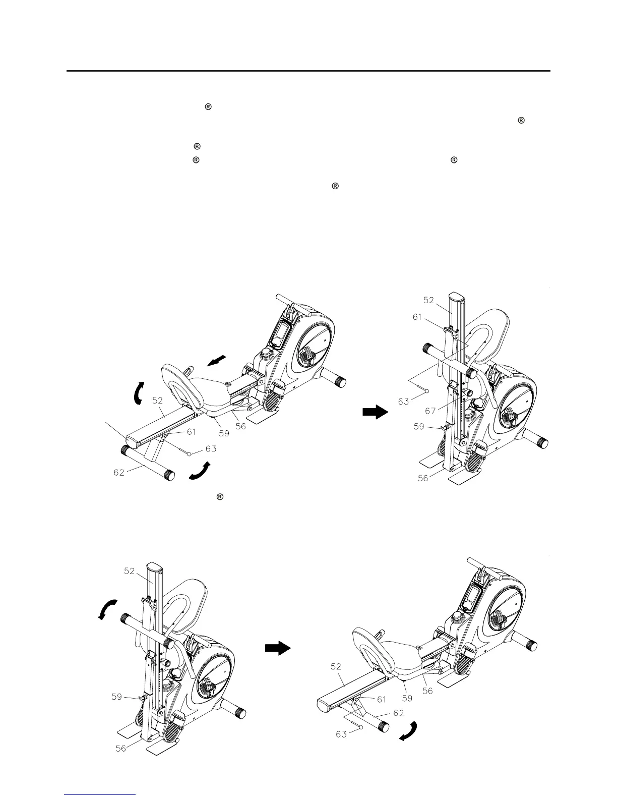 Pull out the RELEASE KNOB(59) and fold up the RAIL(52). Make sure the RAIL(52) is locked