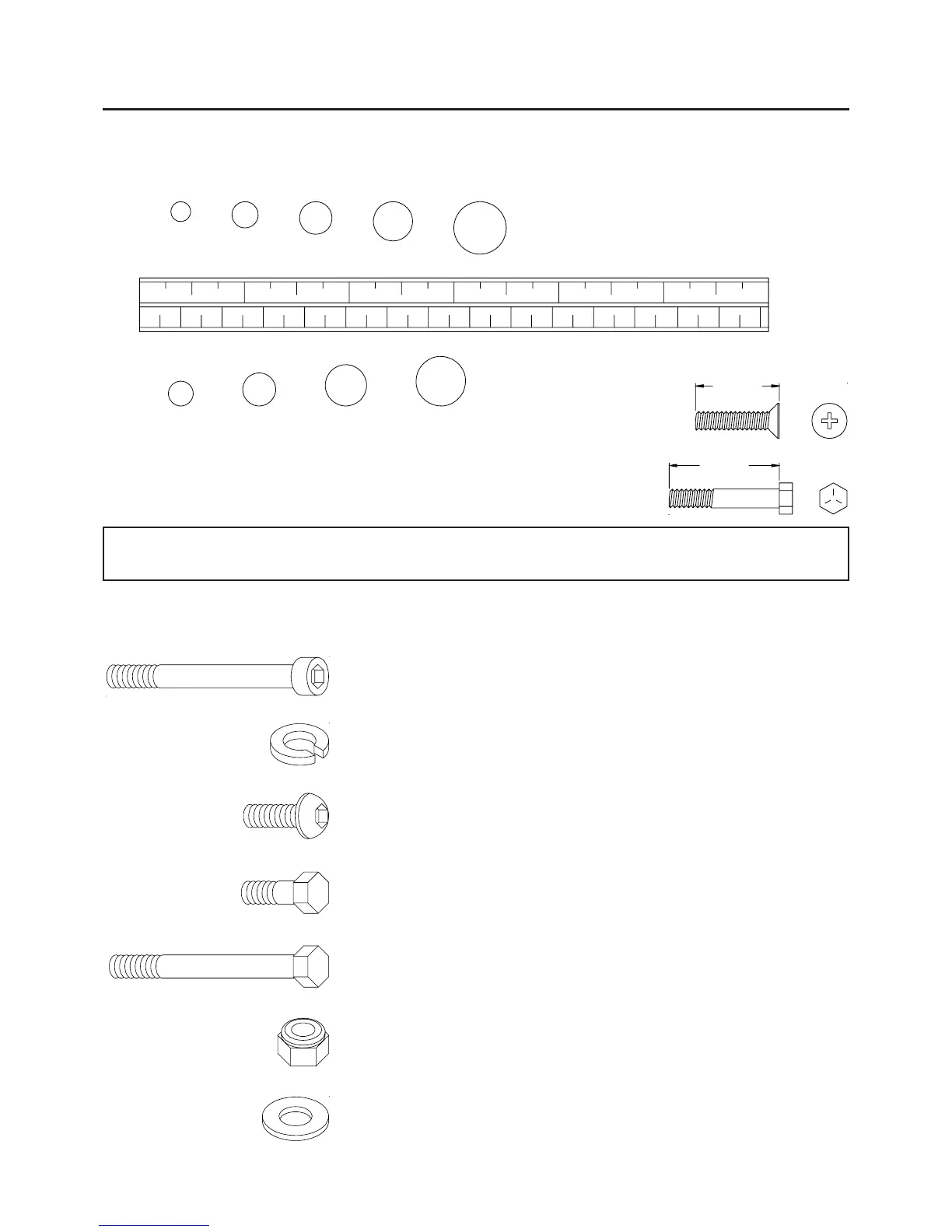 NOTICE: The length of all bolts and screws except those with flat heads is