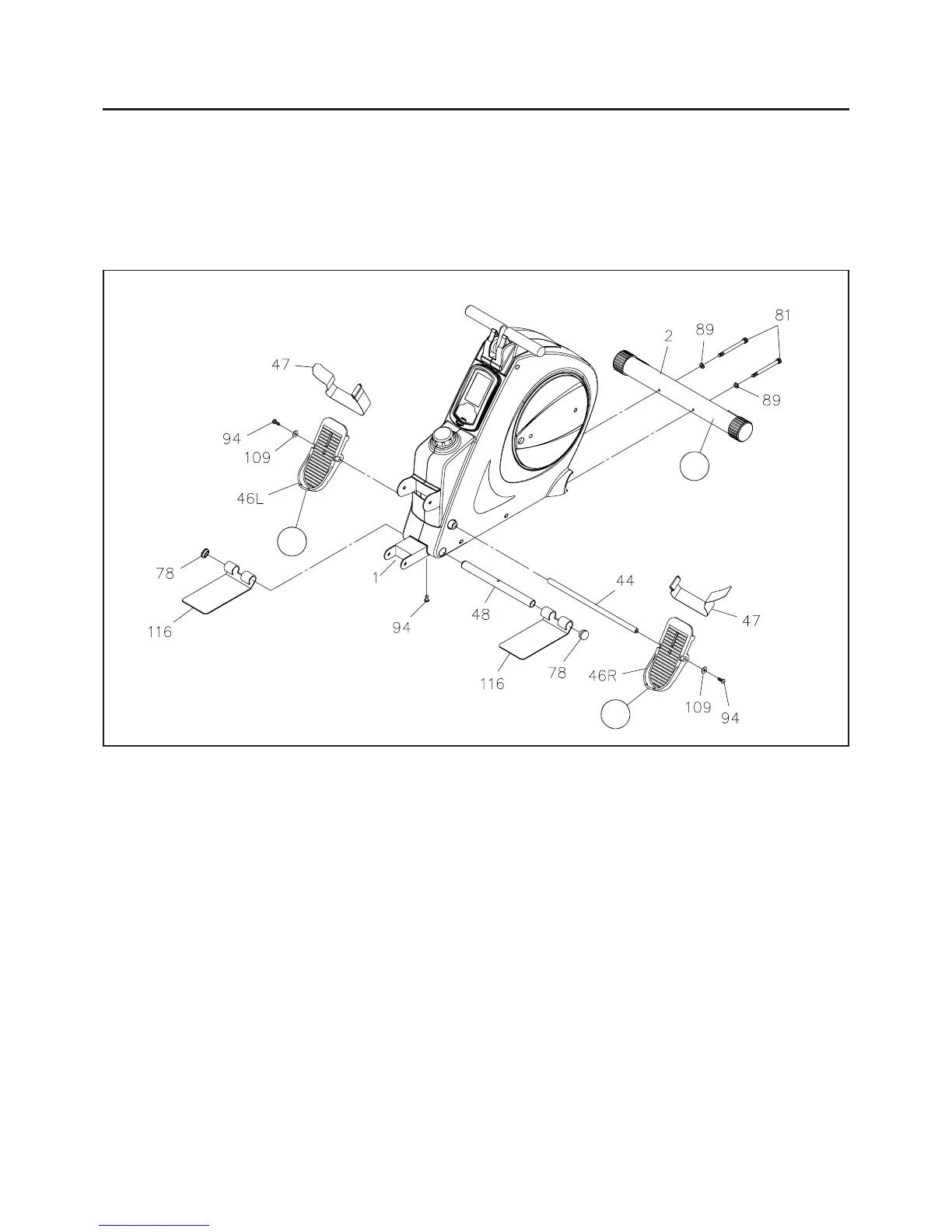 The PEDAL STRAPS(47) are pre-assembled to the FOOT PEDALS(46). The pedal and strap