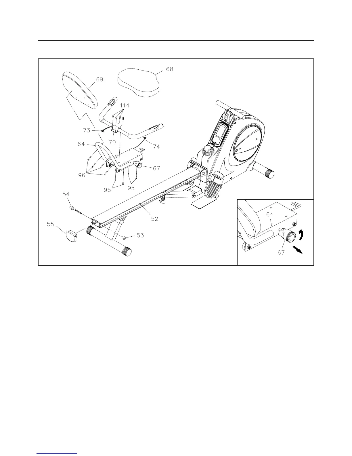 the inset drawing. Slide the SEAT CARRIAGE ASSEMBLY(64) onto the RAIL(52).