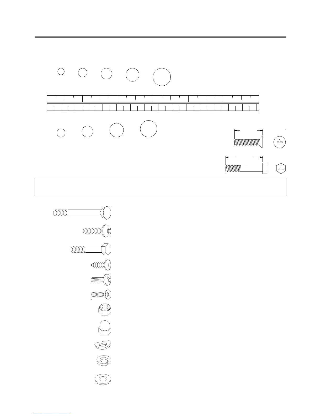 This chart is provided to help identify the hardware used in the assembly process. Place the washers, the