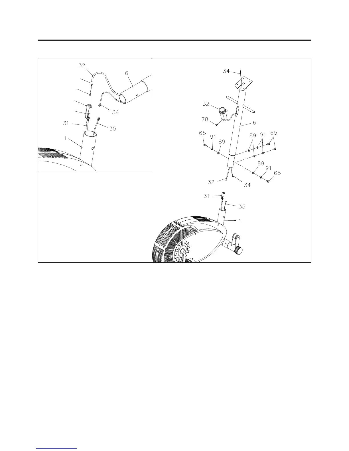 Refer to the illustration. Slide the CABLE on the TENSION KNOB(32) through the UPRIGHT(6). CAUTION: