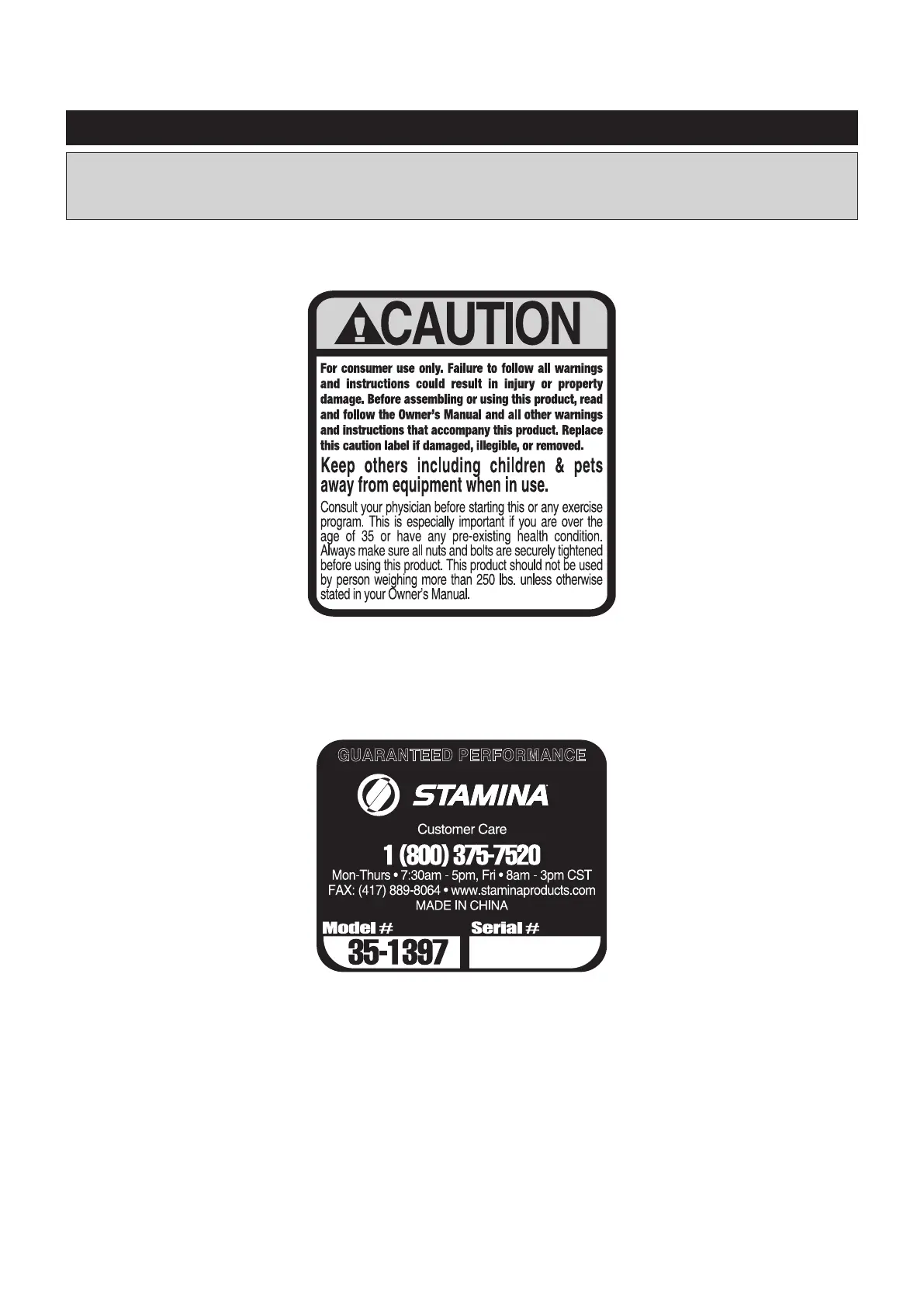 This chart is provided to help identify the warning, caution, and notice labels on the Stamina® DT