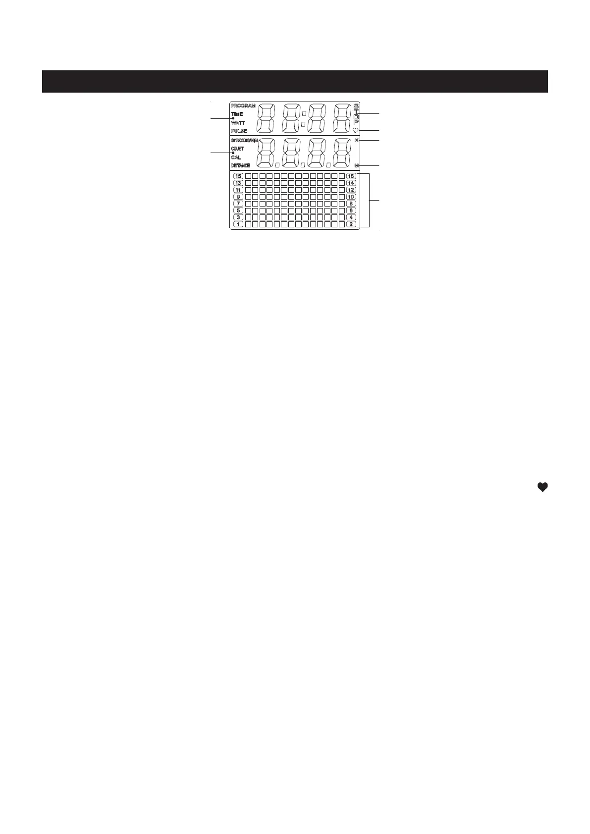 STROKES / MIN : Displays the current strokes per minute during exercise, from zero to 999 strokes per