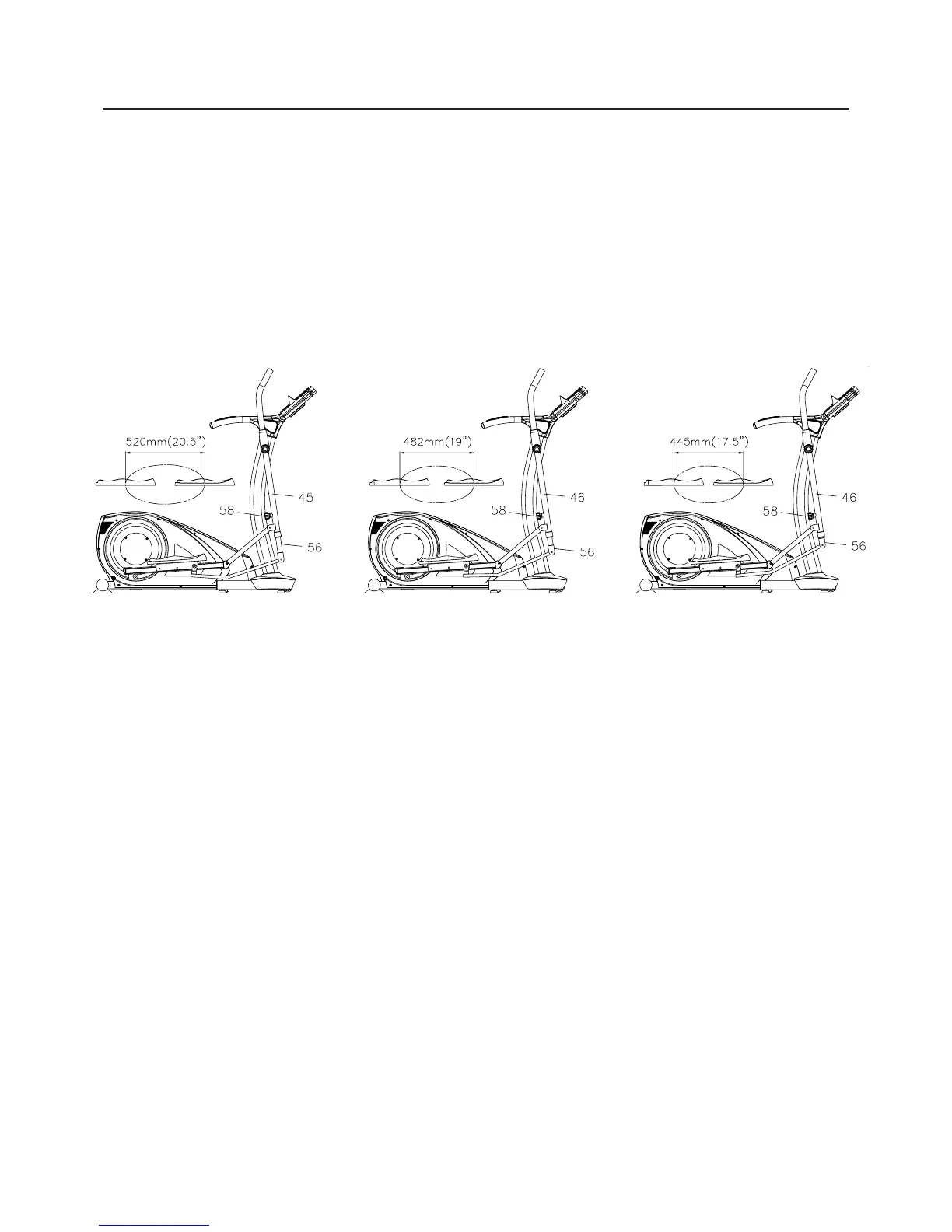 The elliptical path of the PEDAL CAPS(73, 74) can be adjusted by moving the TELESCOPING BARS(56)