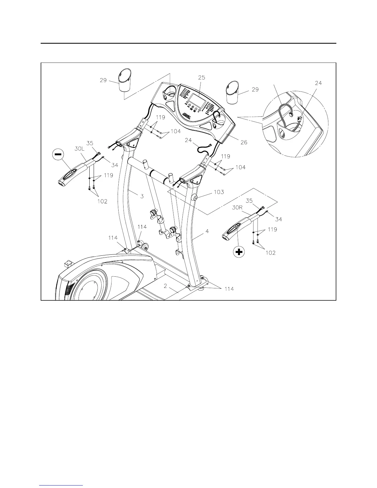 STEP 9: There is a " - " mark on the LEFT HANDRAIL(30L), and a " + " mark on the RIGHT HANDRAIL