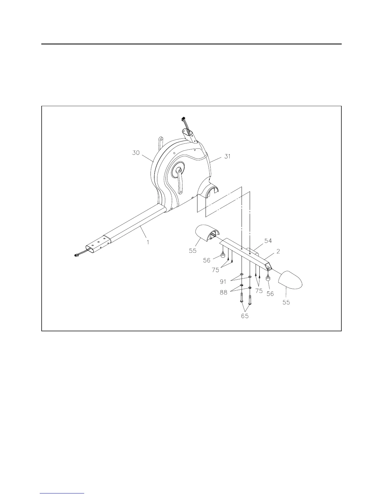 Slide the FOOT CAPS(55) onto both ends of the FRONT STABILIZER(2) so they fit over the edges of the